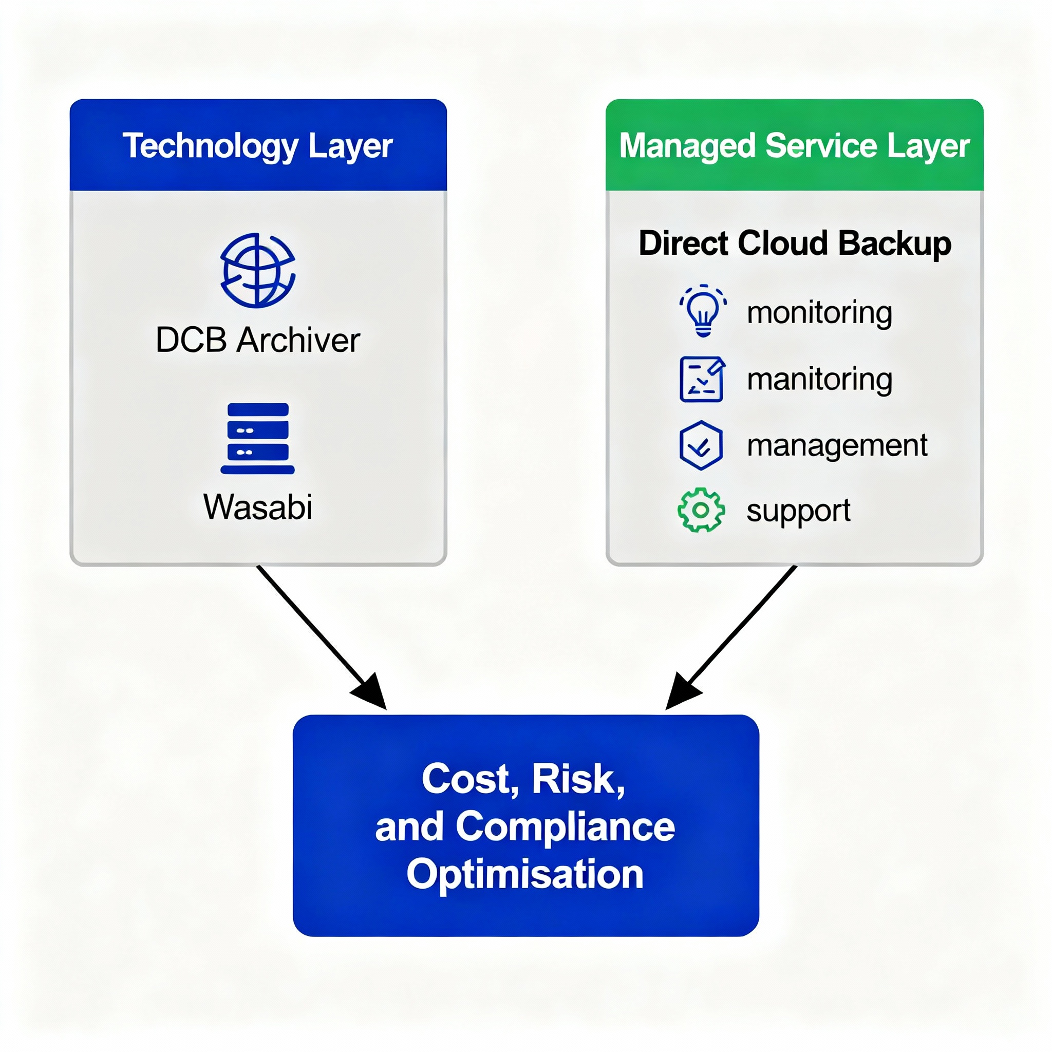 Direct Cloud Backup provides more than just archiving technology — we manage, monitor, and optimise your data retention strategy end-to-end.