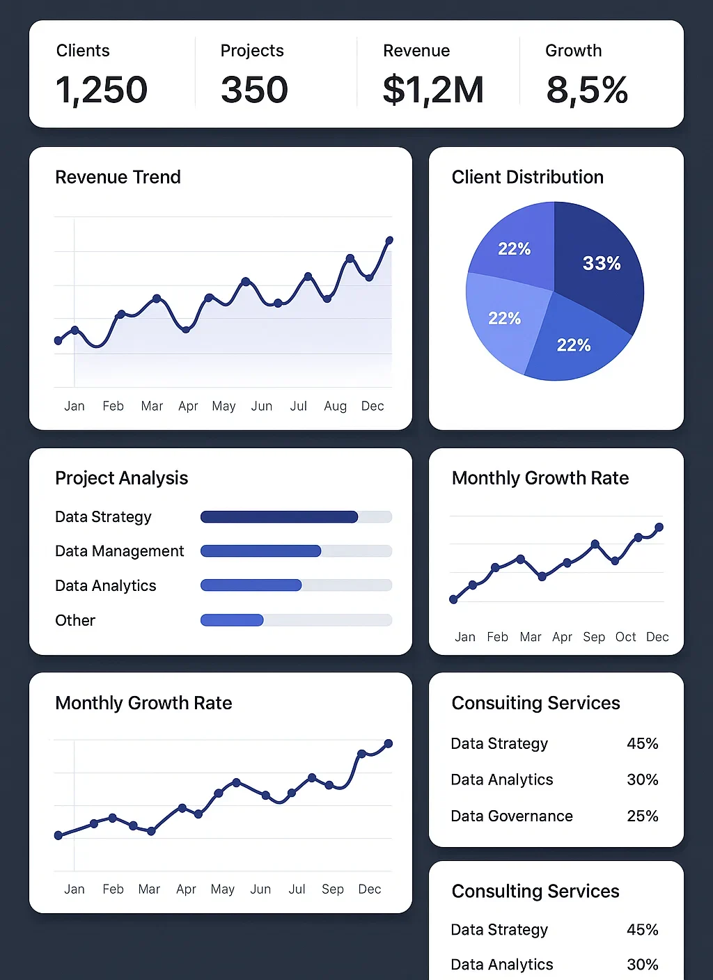Power BI Insights: Using Power BI dashboards to give clients visual analytics, compliance status, and actionable reports.